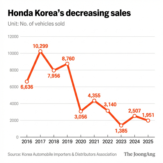 이번 철수는 한국 시장에서 다년간의 저조한 판매 흐름이 배경이다. 한때 한국의 수입차 시장에서 가장 주목받는 브랜드 중 하나였던 혼다는 2008년에 연간 판매 1만 대를 넘어선 최초의 외국 브랜드가 되었고, CR-V 소형 SUV와 어코드 세단을 포함해 12,356대를 판매했다.